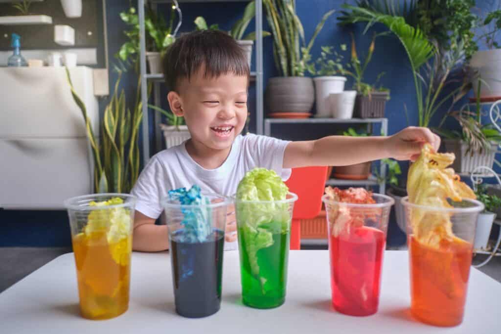 Grab some clear cups and fill each with water and a different color of food coloring. Place a celery stalk or cabbage leaf in each cup and observe with your child as the colors travel up the food! This is a fun science experiment to help understand how water and nutrients are carried through plants.