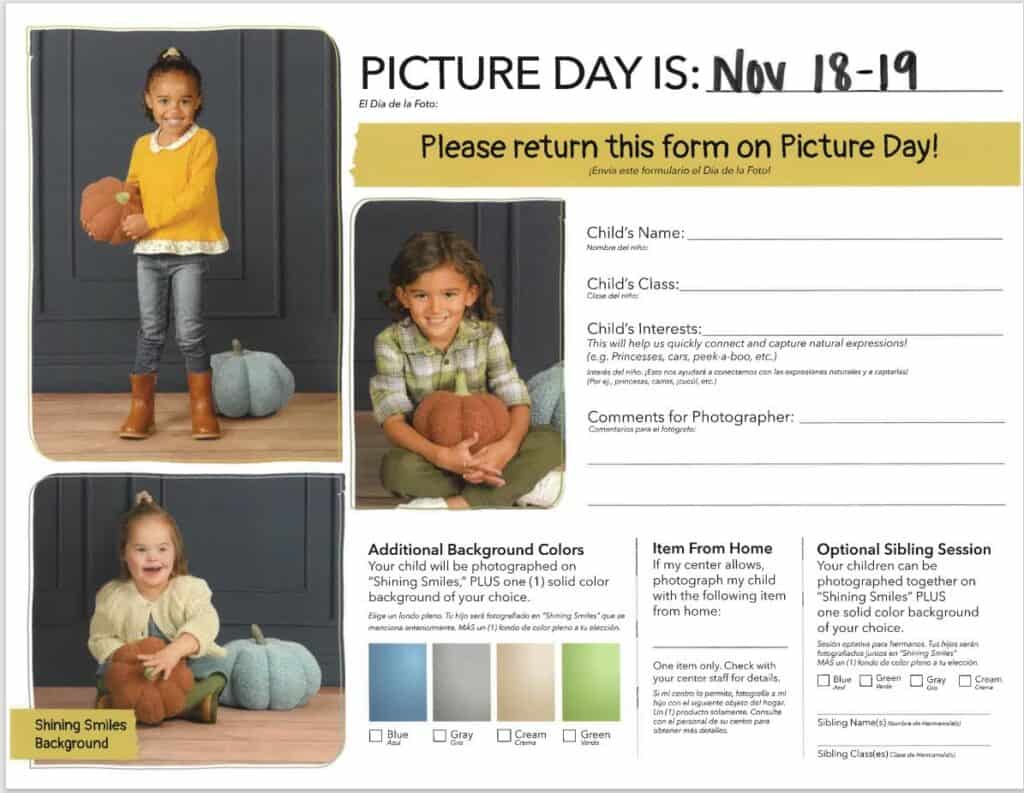 Say cheese! Lifetouch will be on campus for individual and class photos on Tuesday, November 18 and Wednesday, November 19. Dates and sign up sheet below.